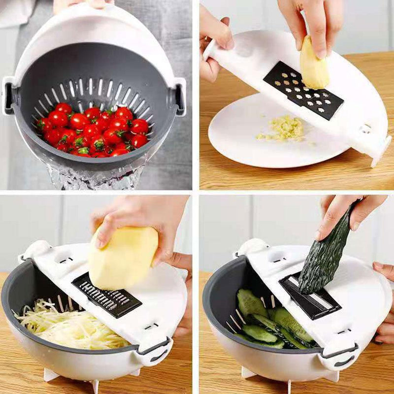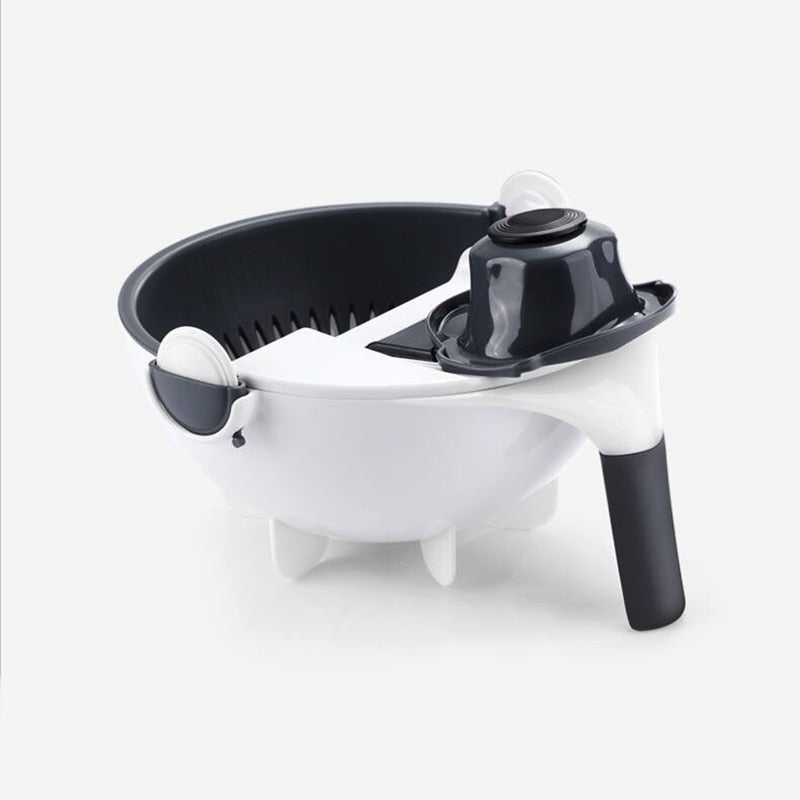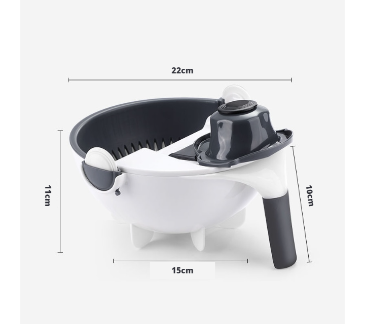 Nosso Cortador de Frutas e Legumes com Bacia de Drenagem é um item de cozinha prático e versátil que permite cortar, ralar, fatiar e escorrer legumes e frutas. Conta com um recipiente com alça, um escorredor removível e sete lâminas diferentes na tampa. Simplifica o preparo de saladas, sopas, refogados e outras receitas, economizando tempo e espaço na cozinha. Tenha mais praticidade e economize dinheiro na cozinha.